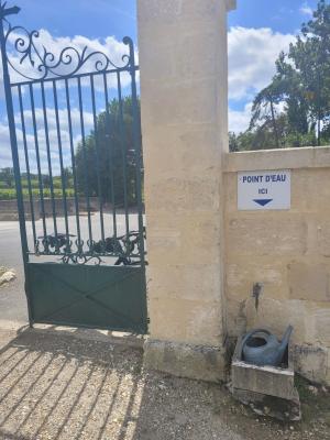 - Le robinet est juste à gauche en passant la grille